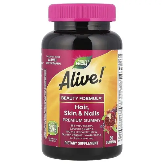 Alive! Hair Skin & Nails with Collagen Strawberry, Кожа ногти волосы, 60 таблеток