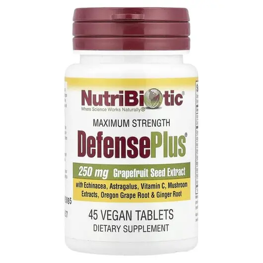 Таблетки DefensePlus от NutriBiotic — это уникальная формула, сочетающая экстракт семян грейпфрута, витамин С, экстракт эхинацеи, астрагал, экстракт корня имбиря, корень магонии, экстракт тысячелистника обыкновенного, цинк и экстракты грибов рейши, гриба-барана и шиитаке, которые используются в медицине по всему миру.