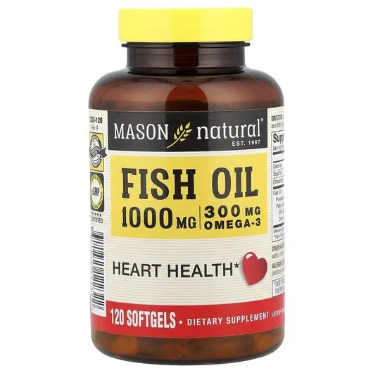 Омега-3 рыбий жир 1000 мг Omega-3 Fish Oil 1000 mg 120 120 капсул, Mason