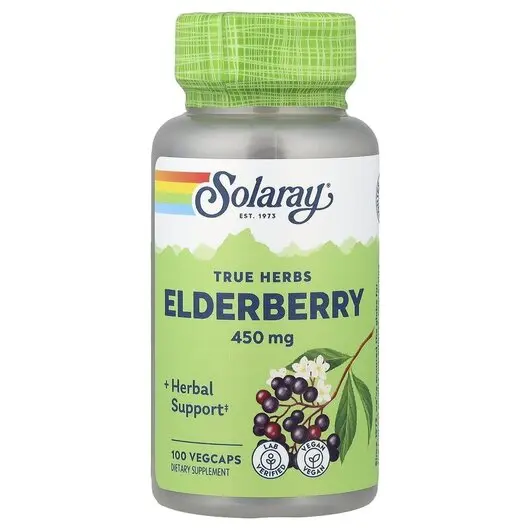 Solaray, Черная бузина 450 мг, Elderberry 450 mg, 100 капсул