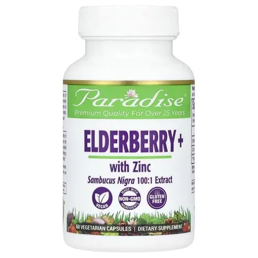 Черная Бузина Earth's Blend Elderberry+ with Zinc 60 капсул, Paradise Herbs