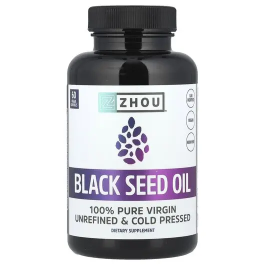Масло черного масла Black Seed Oil 60 Vegetarian 60 капсул, Zhou Nutrition