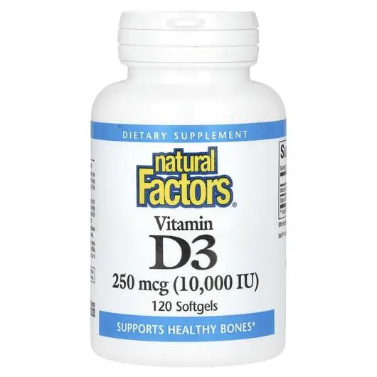 Natural Factors, Витамин D3, Vitamin D3 250 mcg 10000 IU, 120 капсул