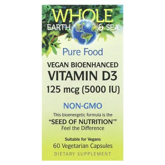 Whole Earth & Sea Vegan Bioenhanced Vitamin D3 5000, Витамин D3, 60 капсул