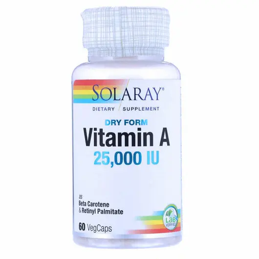 Не содержит ГМО и веганский продукт: доверьтесь сухой форме витамина А Solaray 25 000 МЕ, чтобы почувствовать разницу в качестве.