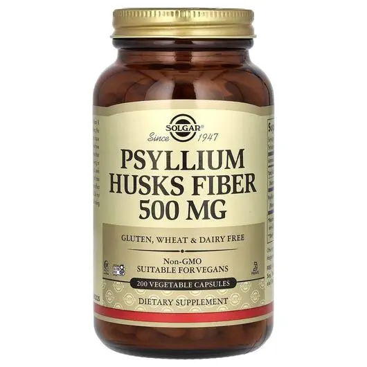 Solgar, Псиллиум 500 мг, Psyllium Husks Fiber 500 mg, 200 капсул