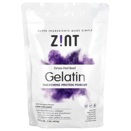 Возвращает молодость! Желатин Zint возвращает вам молодость и красоту изнутри. Восполняя дефицит коллагена в организме, он укрепляет волосы, восстанавливает увлажнение и гладкость кожи, обеспечивая более молодой цвет лица. Он также восстанавливает гибкость ваших суставов и свободу движений и активности, питая соединительную ткань вашего организма, включая хрящи и сухожилия.Преимущества Zint: Мы получаем желатин из скота без ГМО травяного откорма, выращенного на пастбищах в Аргентине. Мы сотрудничаем исключительно с поставщиками, приверженными экологически чистому и этичному ведению сельского хозяйства. Наш полностью натуральный подход не только обеспечивает получение высококачественного говяжьего коллагена как по питательности, так и по вкусовым качествам, но и помогает сохранить доровые и экологически чистые продукты питания для будущих поколений.