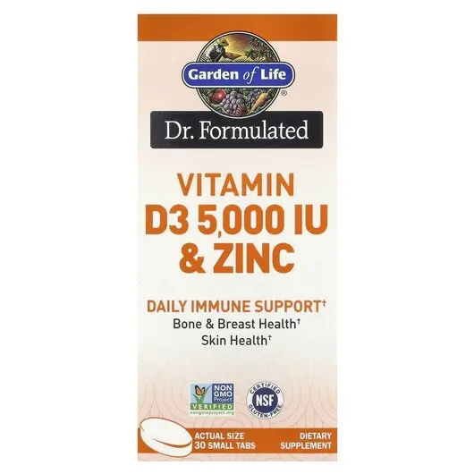 Garden of Life, Витамин D3, Vitamin D3 & Zinc, 30 таблеток