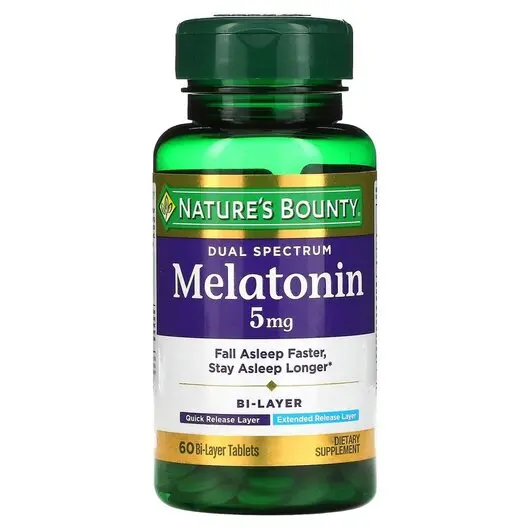 Мелатонин двойного спектра Nature's Bounty вывел на новый уровень помощь со сном для тех, кто иногда страдает бессонницей. Каждая таблетка с двойным слоем основана на технологии ISR, особом механизме доставки действующих веществ, который обеспечивает немедленное и отсроченное высвобождение вещества в одной удобной таблетке