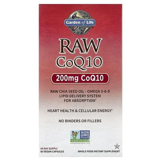 RAW CoQ10 от компании Garden of Life является эффективной формулой, содержащей 200 мг сырого CoQ10 на порцию. Жирорастворимый кофермент RAW CoQ10 предлагает уникальную для усвояемости систему доставки — сырое масло семян чиа холодного отжима, содержащее матрицу с омега 3-6-9.
