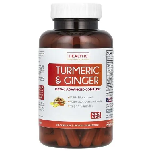 Куркумин и Имбирь, Turmeric & Ginger with Bioperine, 90 капсул