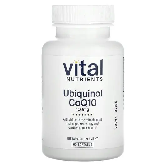 Убихинол CoQ10 100 мг от Vital Nutrients обеспечивает значительную порцию популярного кофермента, который помогает организму множеством способов.