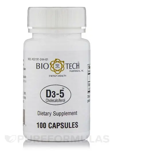 При стандартной дозировке одной капсулы в день каждой бутылки холекальциферола D3-5 от Bio-Tech Pharmacal на 100 капсул должно хватить более трех месяцев.