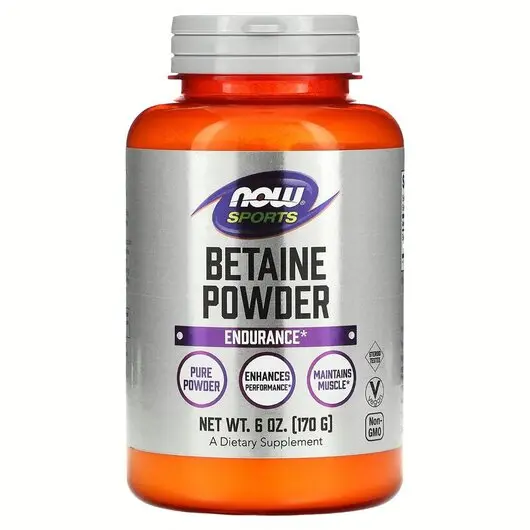 Бетаин (триметилглицин) представляет собой модифицированную аминокислоту, которая обычно участвует в качестве кофактора во многих реакциях, необходимых для нормального функционирования клеток, включая синтез креатина, карнитина и адреналина, а также в детоксикации гомоцистеина. Бетаин также помогает сохранить объем и функцию клеток во время стресса, вызванного интенсивными физическими упражнениями. Клинические исследования показывают, что бетаин может способствовать повышению выносливости и оптимизации мышечной массы и производительности во время тренировок. Бетаин также может помочь поддерживать здоровое телосложение при использовании вместе со здоровой диетой и программой упражнений.