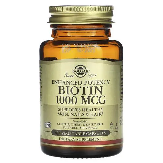 Биотин — это водорастворимый витамин B. Он помогает поддерживать здоровье кожи, ногтей и волос и необходим для правильной работы некоторых ферментов. Биотин также поддерживает энергетический обмен в организме и необходим для обмена белков, углеводов и жиров.