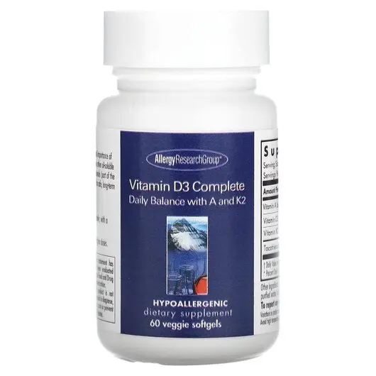 Vitamin D3 Complete разработан с учетом решающей важности баланса витамина D и витамина A. Он также содержит другие жирорастворимые витамины, K2 (менахинон-7) и токотриенолы DeltaGOLD (часть витамина E). Комплекс с витамином D3 можно безопасно принимать ежедневно на протяжении длительного времени для большинства людей.