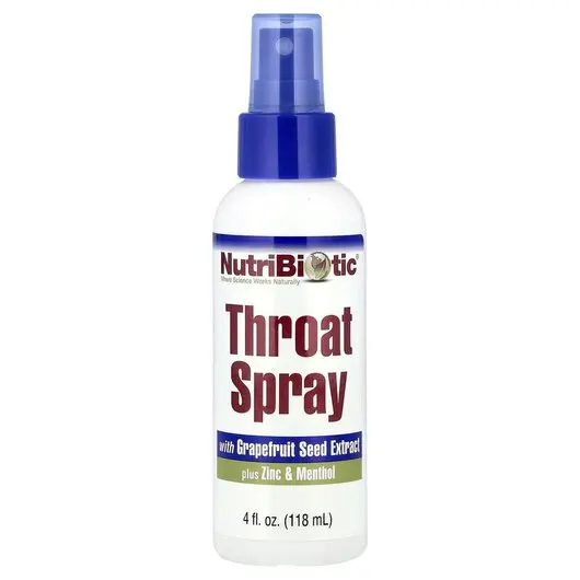 Спрей для горла NutriBiotic с Citricidal (экстракт семян грейпфрута), цинком и ментолом способствует поддержанию здорового состояния полости рта и горла.