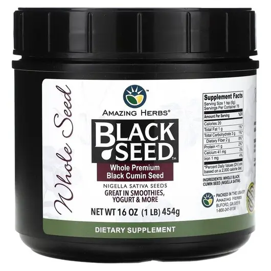 Черный тмин Black Seed Whole Premium Black Cumin Seed 454 г, Amazing Herbs