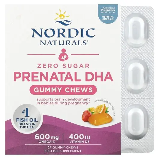 Пренатальные жевательные конфеты с DHA сочетают в себе хорошо усваиваемый рыбий жир омега-3 с преобладанием DHA и витамин D3 для поддержания здоровой беременности и нормального развития нервной системы ребенка в одной вкусной жевательной конфете с нулевым содержанием сахара. Эти клубнично-апельсиновые жевательные конфеты идеально подходят для будущих мам, испытывающих трудности с глотанием мягких гелей. Они позволяют легко удовлетворить возросшие потребности в питательных веществах во время беременности.