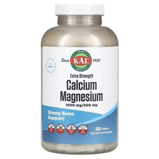 KAL, Кальций, Calcium Magnesium Extra Strength, 250 таблеток