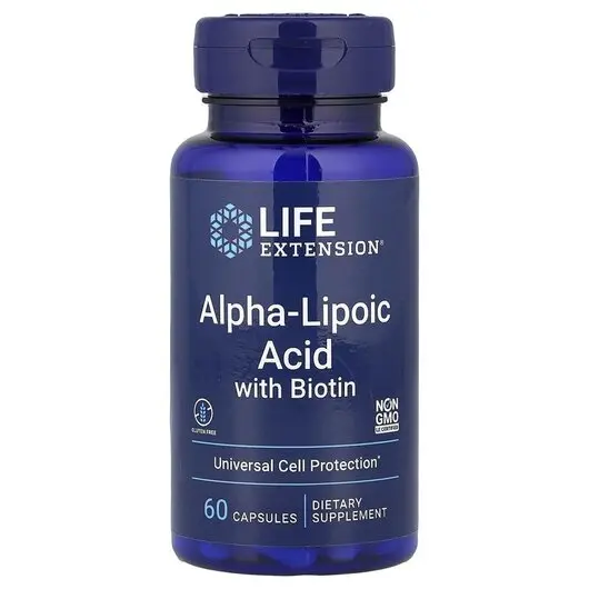 Антиоксидантные свойства альфа-липоевой кислоты, усиленные действием биотина. Капсулы для приема дважды в день для улучшения здоровья печени и нервной системы и защиты от окислительных реакций.