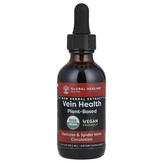 Поддержка вен ног Raw Herbal Extract Vein Health 59.2 мл, Global Healing