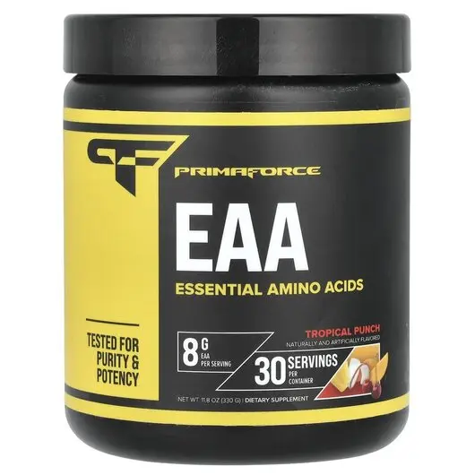 Порошок PrimaForce EAA содержит 8 граммов EAA на порцию и 30 порций на контейнер.