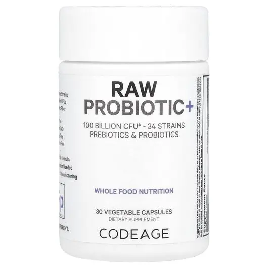 Codeage Raw Probiotic+ сочетает в себе 34 пробиотических штамма со 100 миллиардами КОЕ, активными ферментами и смесью сырых фруктов и овощей с пребиотиками, комплексной комплексной формулой для здоровья кишківника и общего поддержания здоровья. Эта формула, включающая основные элементы, такие как болгарский йогурт и культура дикого восточноевропейского кефира, обеспечивает богатый источник полезных веществ.