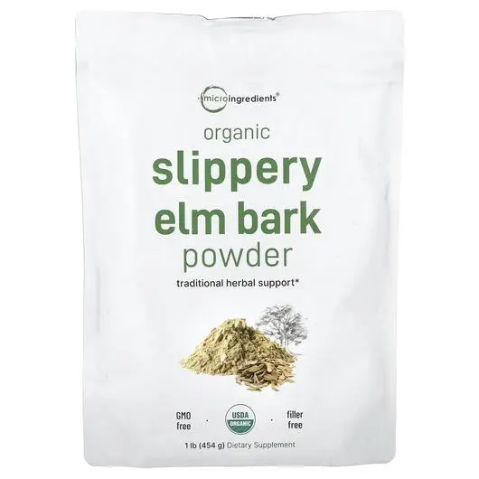Скользкий вяз, Organic Slippery Elm Bark Powder, 454 г