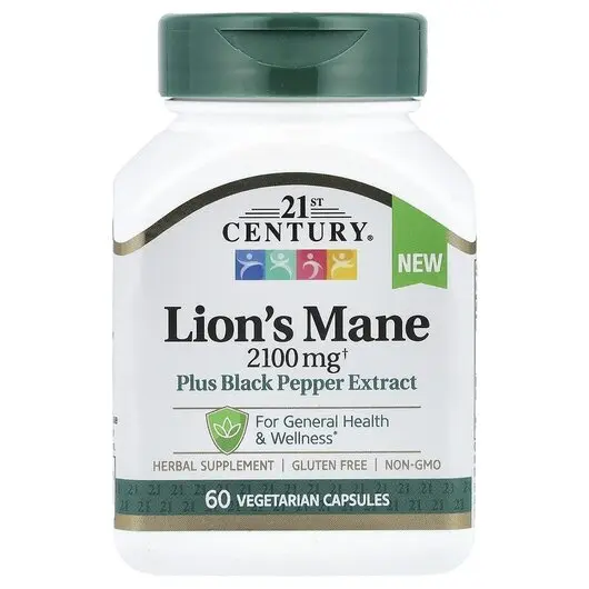 21st Century, Грибы Львиная грива, Lion's Mane 2100 mg, 60 капсул