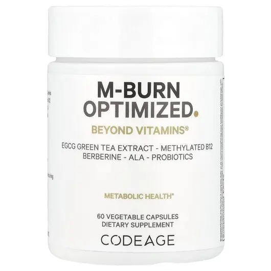 - Добавка Codeage M-Burn Optimized объединяет в одной формуле экстракт зеленого чая без кофеина, стандартизированный до 50% EGCG, витамин B12 в форме метилкобаламина, гидрохлорид берберина и альфа-липоевую кислоту.