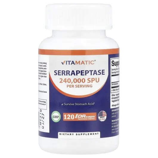 Vitamatic, Серрапептаза, Serrapeptase 240000 SPU, 120 капсул