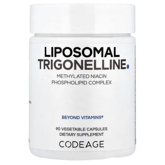 Метилированный ниациновый фосфолипидный комплекс. Помимо витамина. Пищевая добавка. Тригонеллин TRG. Липосомальная доставка. Веганский. Не содержит ГМО. Без сои. Без молочных продуктов. Не содержит глютен. Производство, сертифицированное cGMP. Почувствуй себя по-другому. Липосомальный тригонеллин Codeage представляет собой усовершенствованную добавку еще...