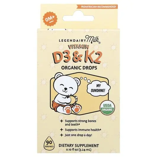 Витамины D3 + K2, Vitamin D3 & K2 Organic Drops 0 + Months, 3.24 мл