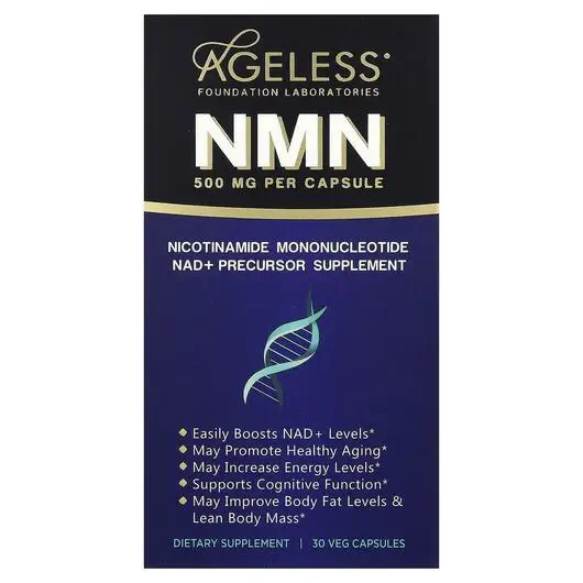 Ageless, Никотинамид мононуклеотид, NMN 500 mg, 30 капсул