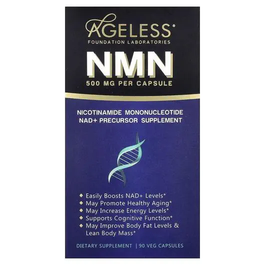Ageless, Никотинамид мононуклеотид, NMN 500 mg, 90 капсул