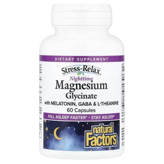 Stess-Relax Nighttime Magnesium Glycinate With Melatonin, Мелатонин, 60 капсул