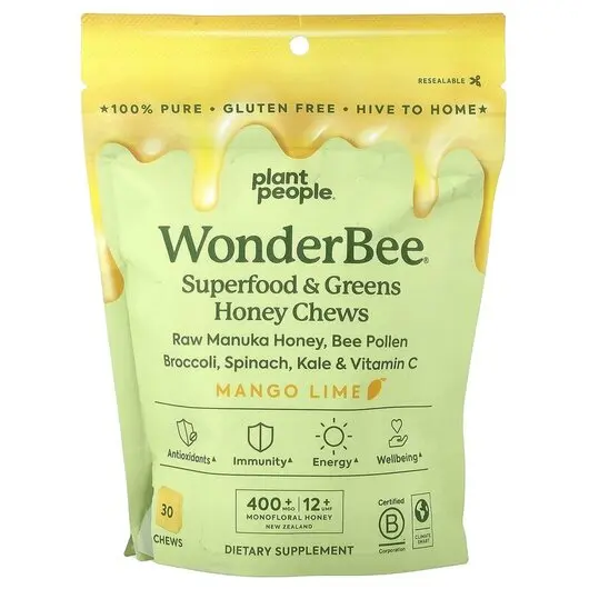 WonderBee Superfood & Greens Honey Chews Mango Lime, Супергринс, 30 Chews