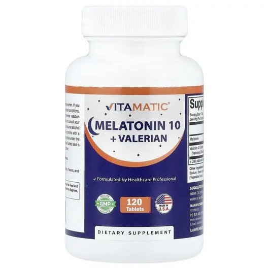 Vitamatic, Мелатонин, Melatonin 10 + Valerian, 120 таблеток