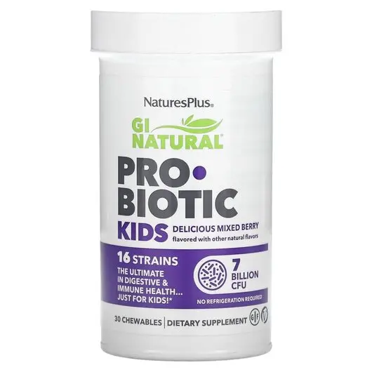 Прекрасный ягодный вкус. 16 штаммов. Оптимальная поддержка пищеварения и иммунитета детей. Не требует хранения в холодильнике. Пищевая добавка. Без глютена. Комплекс пробиотиков GI Natural Probiotic Kids обеспечивает эффективную поддержку пищеварения и еще...