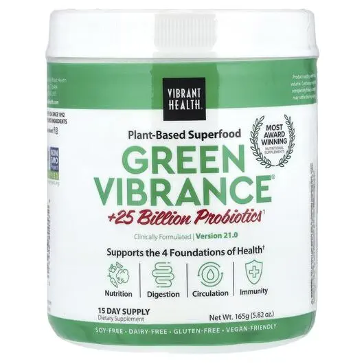 Правильний догляд та зберігання: Після відкриття зберігайте Green Vibrance у морозильній камері (найкраще) або холодильнику (добре). Зберігати в недоступному для дітей.