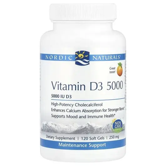 Вітамін D давно відомий своєю важливою роллю в регулюванні рівня кальцію та фосфору в організмі, а також у збільшенні мінералізації в кістках. Вітамін D3 5000 Nordic Naturals — це холекальциферол, натуральна форма вітаміну D, яка найбільш легко засвоюється та використовується. Кожна порція містить 5000 МО вітаміну D3 в оливковій олії першого віджиму.