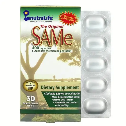 Будь ласка, прочитайте листок-вкладиш, що знаходиться всередині упаковки, для отримання додаткової інформації про SAMe від NutraLife.