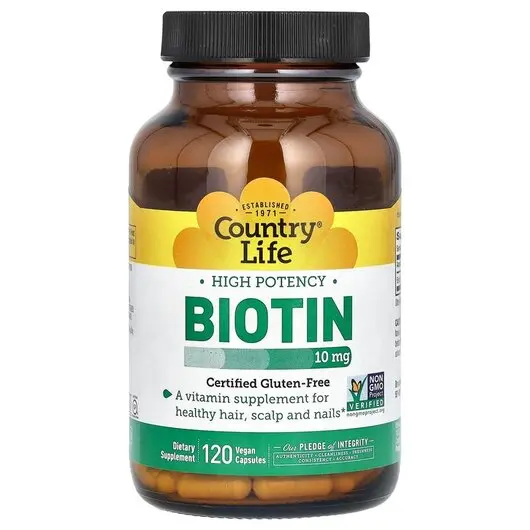 Country Life, Biotin High Potency 10 mg, Вітамін B7 Біотин, 120 капсул