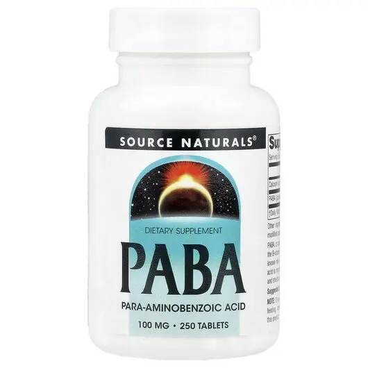 Source Naturals, PABA 100 mg 250, ПАБА 100 мг PABA, 250 таблеток