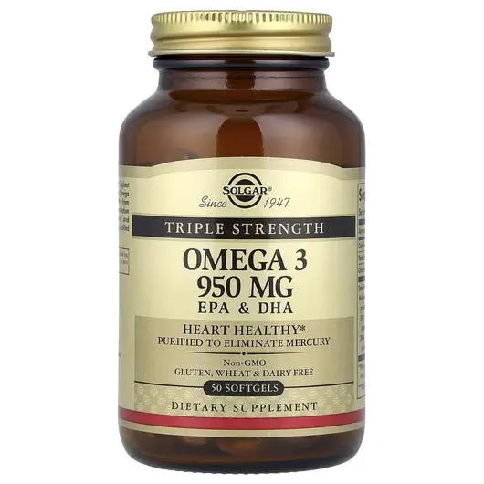 Омега 3950 мг-це найвища концентрація природного поліненасиченого Омега-3 Омега-3 ЕПК і ДГК, що надходить із солодкої води з холодноводних риб. Ця формула підтримує здоров'я серцево -судинної системи, суглобів та шкіри. Його молекулярно переганяють для видалення ртуті.