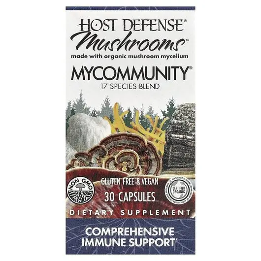 MyCommunity — це формула Host Defense із 17 видів, спочатку створена Полом Стаметсом — найповніша капсульна формула Host Defense для підтримки природного імунітету.