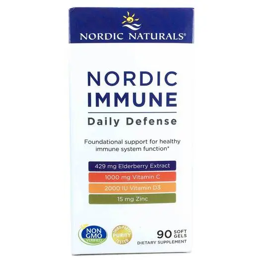 Nordic Immune Daily Defence робить підтримку вашої імунної системи зручнішою, ніж будь-коли, завдяки чотирьом взаємодоповнюючим і добре вивченим поживним речовинам в одній потужній формулі. Ці доказові інгредієнти спільно підтримують ряд природних імунних механізмів і забезпечують потужну антиоксидантну підтримку для здорової відповіді на імунні стресові фактори. Основні вітаміни C і D3 сприяють критичній імунній діяльності, тоді як гліцинат цинку та стандартизований екстракт бузини підтримують розвиток і функціонування імунних клітин. Ця зручна суміш поживних речовин розроблена для щоденного використання, щоб забезпечити фундаментальну підтримку працьовитим імунним клітинам протягом року, оскільки ваша імунна система ніколи не бере вихідних. Не містить ГМО, перевірено третьою стороною на чистоту та ефективність. 4-в-1 щоденна підтримка імунітету Стандартизований екстракт бузини (Sambucus nigra) містить біоактивні поліфеноли, які називаються антоціанами, які сприяють здоровій роботі імунних клітин. Вітамін С Важливий антиоксидант, який допомагає організму захищатися від вільних радикалів. Вітамін D3 підтримує здорову імунну відповідь і сприяє здоровій роботі імунних клітин. Гліцинат цинку підтримує розвиток і функціонування імунних клітин.