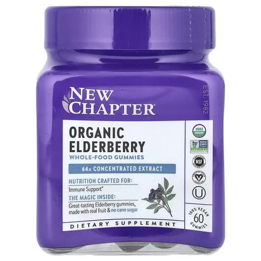 New Chapter, Organic Elderberry Gummies, Бузина, 60 цукерок