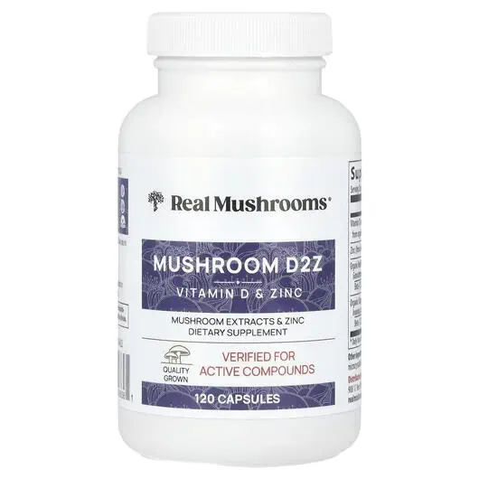 Real Mushrooms Mushroom D2Z D2/Beta Glucan/Zinc, Гриби, 120 капсул